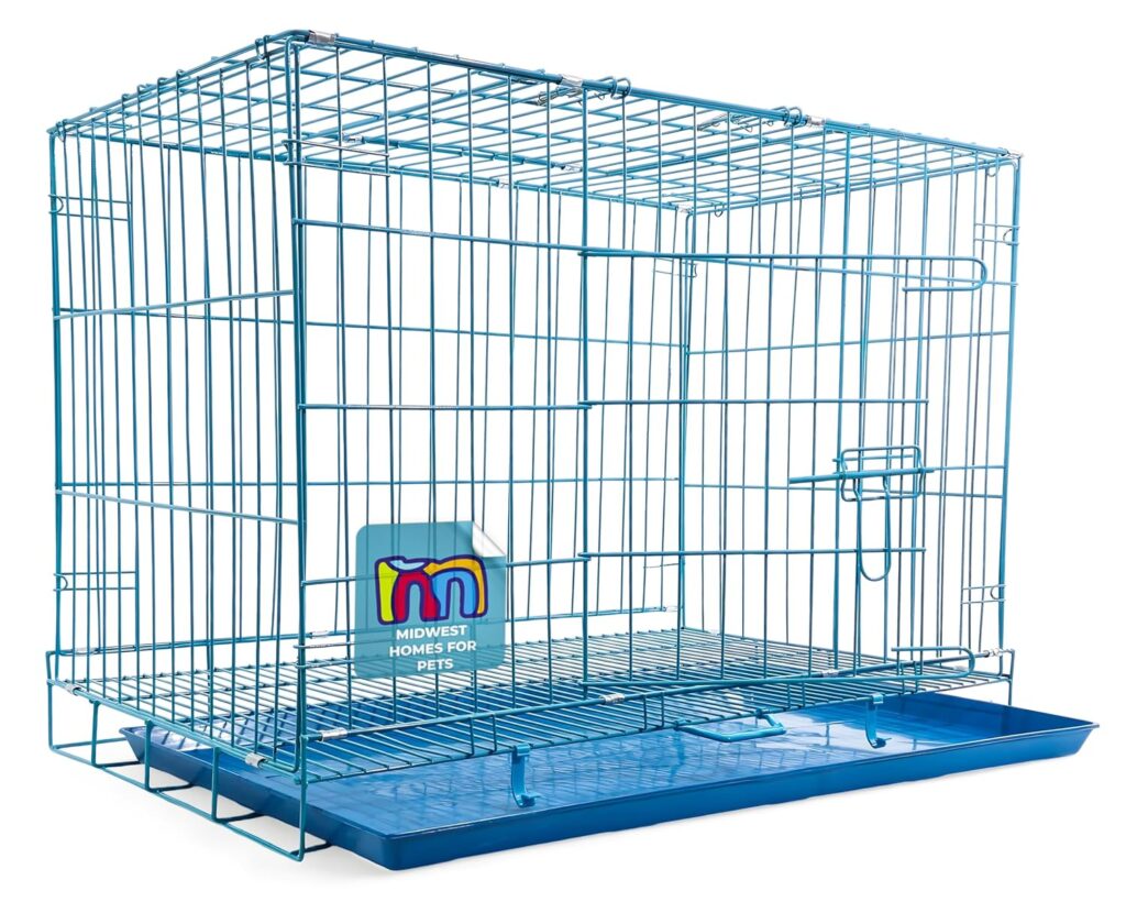 MidWest Homes for Pets Iron Dog Crates Cage Kennel 36 Inch - Large Adult Dog Crate (36Lx25.50Wx24.50H)- Portable & Foldable Design Blue Color